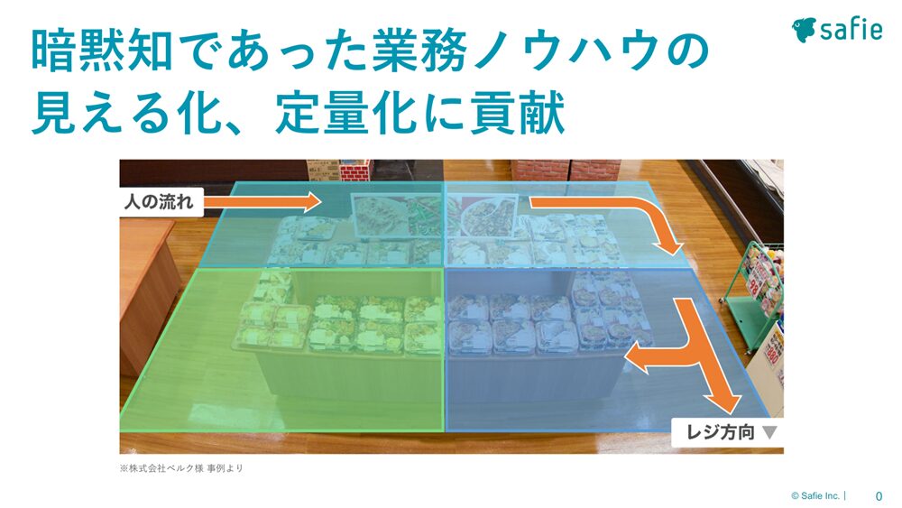 映像とAIを連携したデータ分析により来店客の行動パターンを分析、商品の陳列と補充管理の最適化を実現しています。これにより販売力強化やフードロス削減に繋がっています。