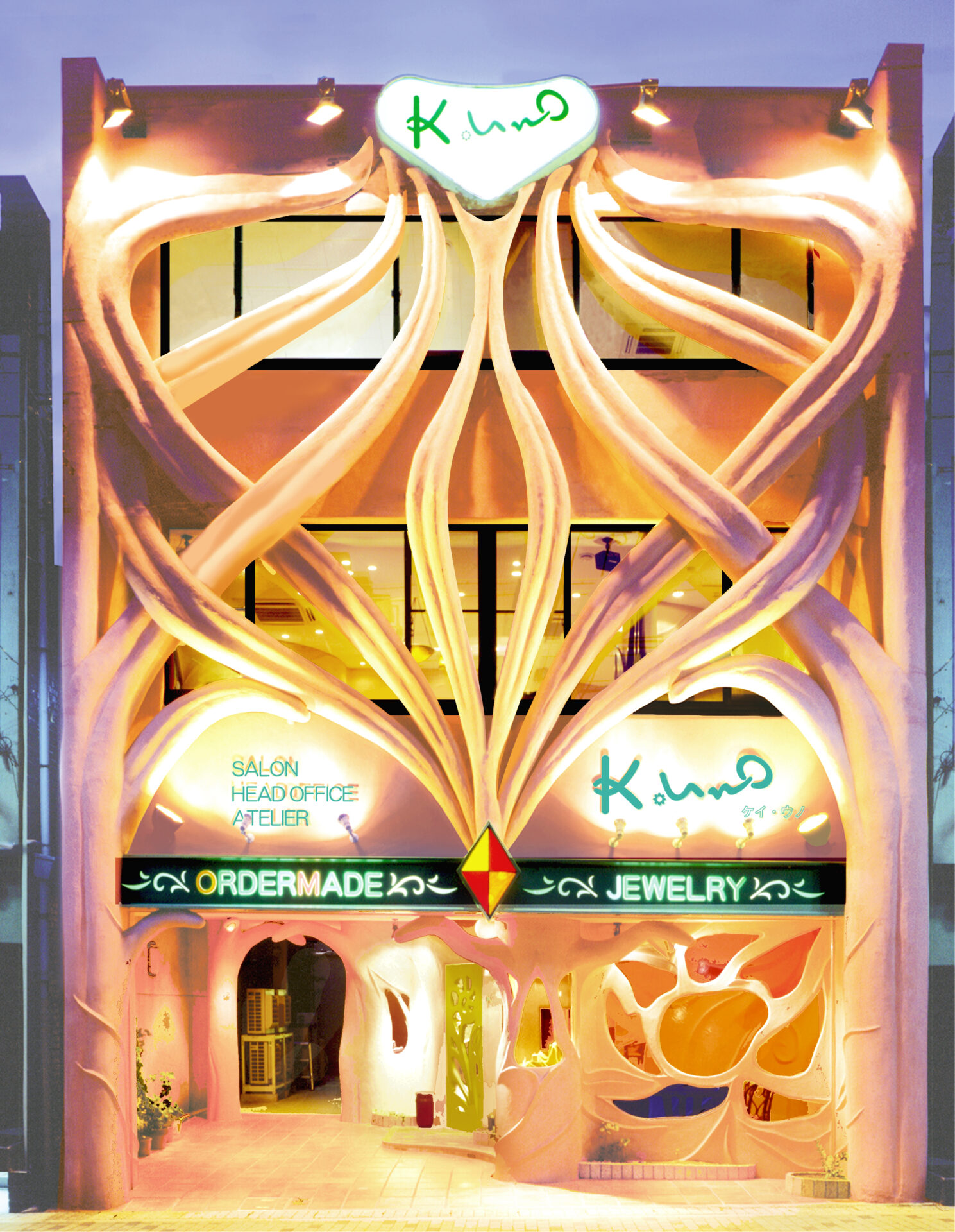 ケイウノのデザインには一つひとつにコンセプトがあり、一生愛せる宝物となるよう願いが込められています。オーダーメイドを主軸にジュエリーや時計で顧客の想いをカタチにしています。他にもリフォーム・修理を中心に手がけており、年間に約4万種類のデザインを生み出しています。