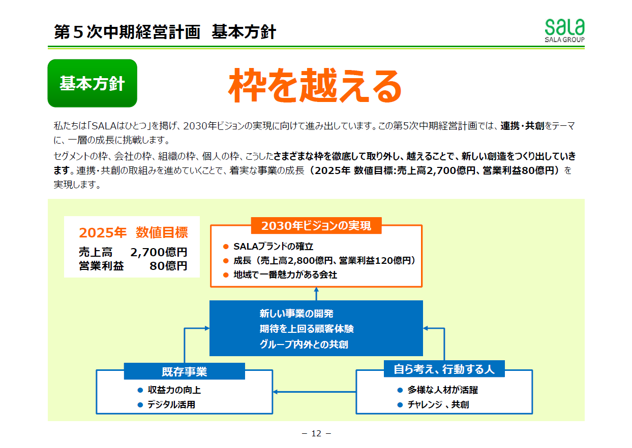 サーラグループは、2030年のグループビジョンとして、売上高2,800億円、営業利益120億円という高い目標を掲げています!