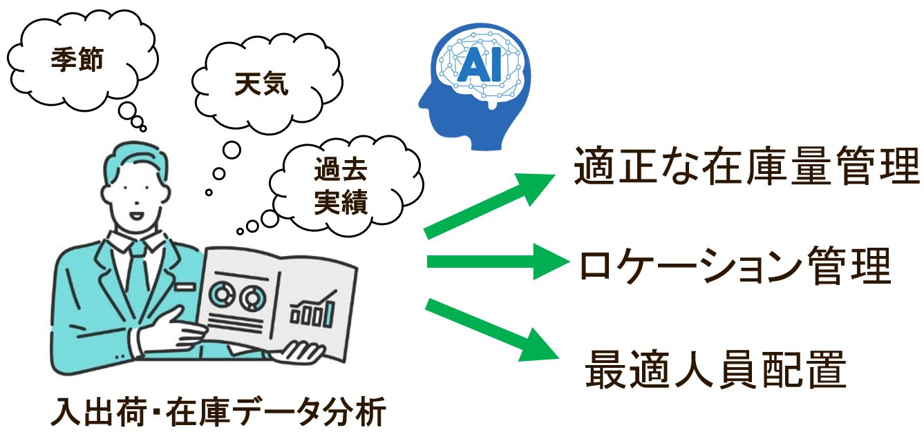 在庫管理は、季節、天気、過去の実績等のデータを分析して管理しています。実は、AIの活用も進めています。食品を主に扱っているため、流通量だけではなく、温度管理や出荷期限の管理も行っています!