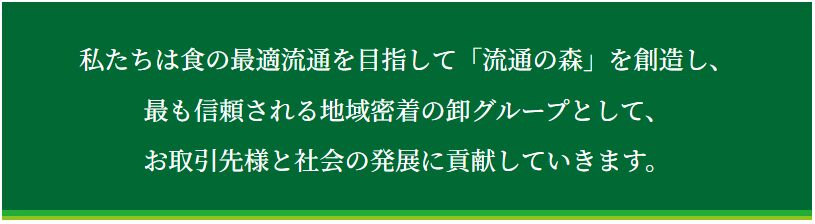 私たちは食の最適流通を目指して「流通の森」を創造し、最も信頼される地域密着の卸グループとして、お取引先様と社会の発展に貢献していきます。